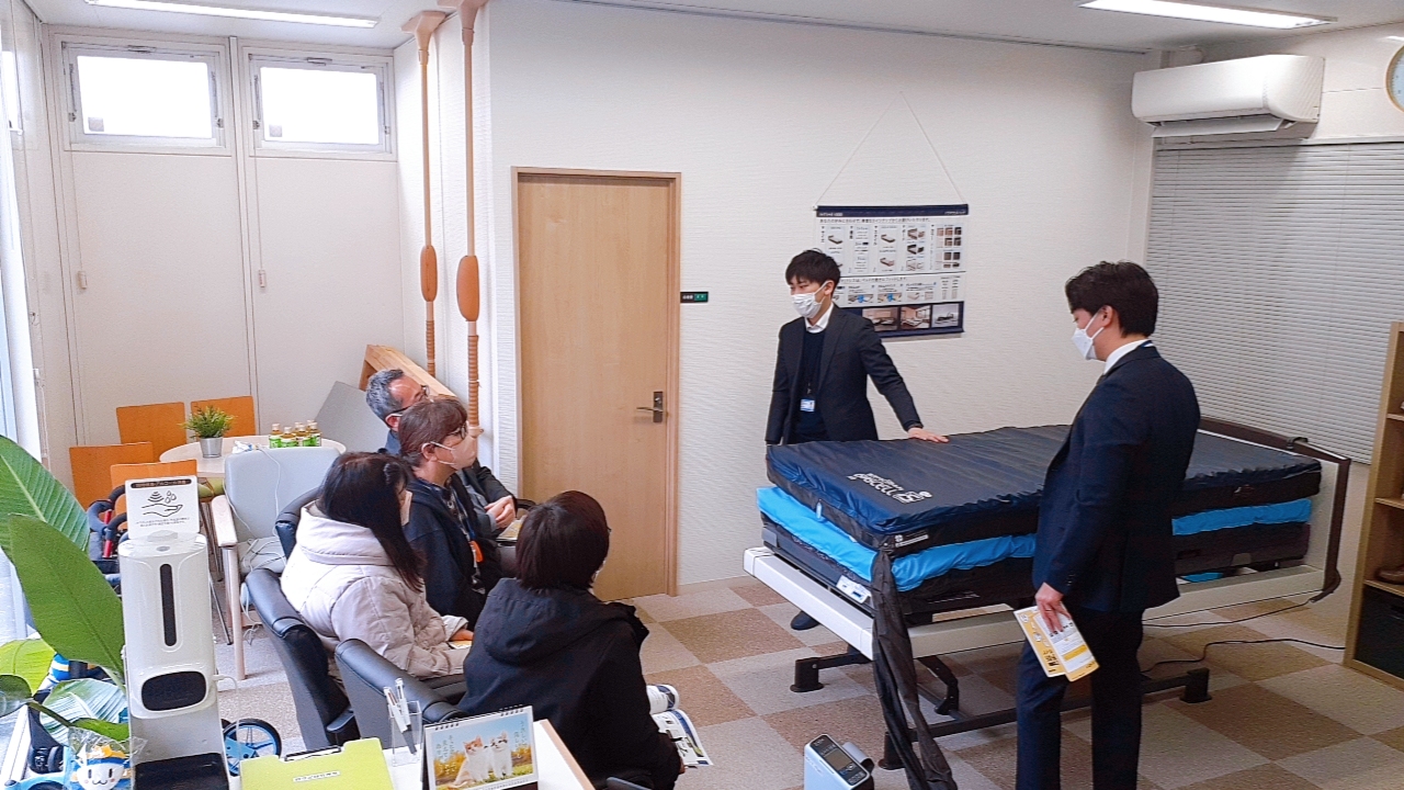 ①床ずれの基礎知識②予防マットレスの効果、商品紹介を行いました。