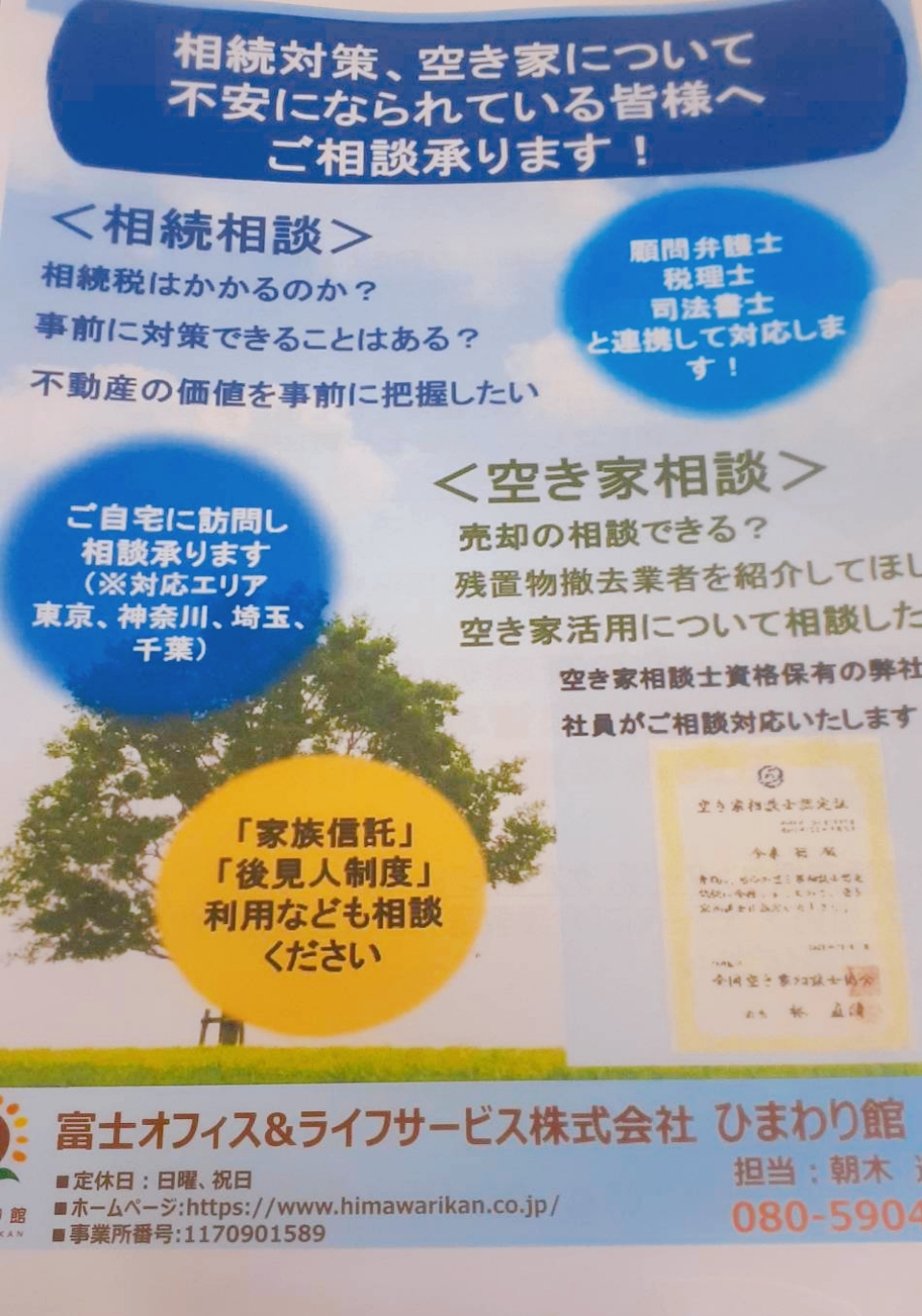 ひまわり館では、独自サービスの一つである「空き家・相続相談」も対応しており