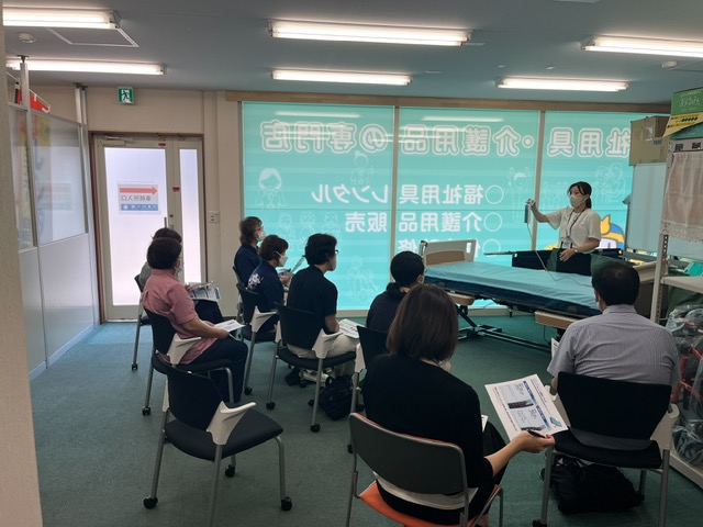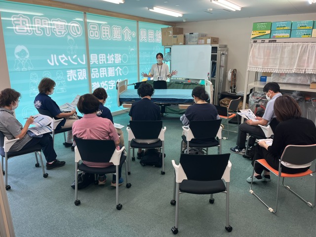 私共も一緒に参加し、エアマットの機能・効果・操作方法等を学び、実際に触れることで