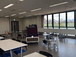 岡部公民館の大会議室にて、福祉用具に関わるサービス